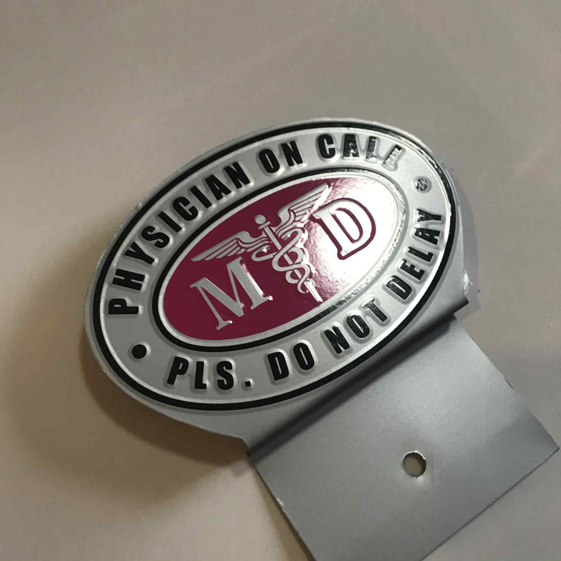 Expertly crafted from high-grade, rust-resistant metal, it showcases the classic MD insignia and Caduceus symbol on a refined silver and black finish. The bold “PHYSICIAN ON CALL – PLS. DO NOT DELAY” lettering ensures visibility and recognition wherever you go.