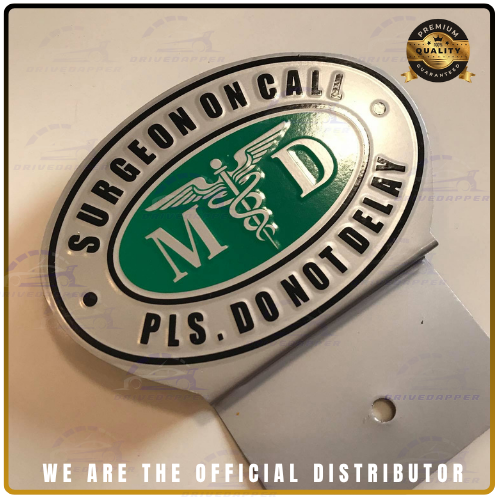 Expertly crafted from high-grade, rust-resistant metal, it showcases the classic MD insignia and Caduceus symbol on a refined silver and black finish. The bold “SURGEON ON CALL – PLS. DO NOT DELAY” lettering ensures visibility and recognition wherever you go.